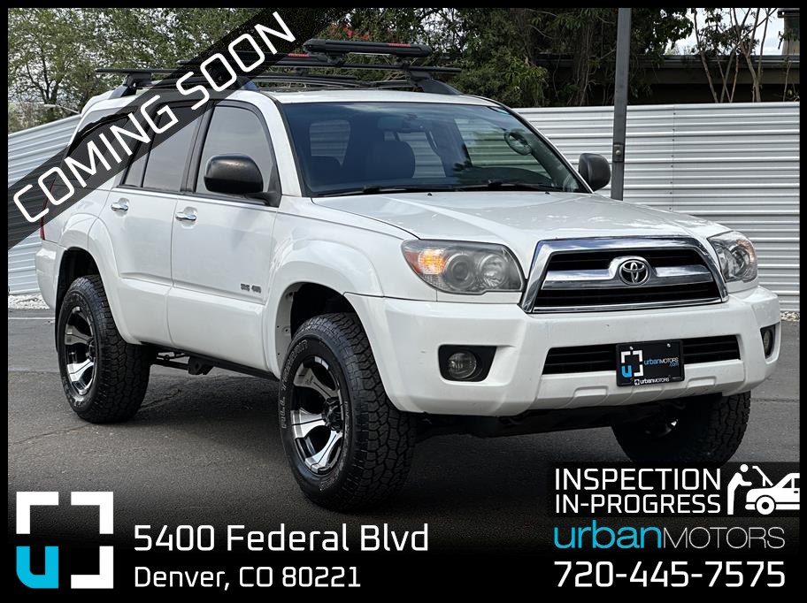 Discover adventure and reliability with this 2007 Toyota 4Runner SR5 Sport Utility, now available at Urban Motors Blue in Denver, CO! Powered by a robust 4.0L V6 engine and equipped with 4WD, this white beauty is built to handle any terrain with confidence. Featuring an automatic transmission and 236,725 miles, it offers a perfect blend of power and durability for your daily drives and weekend getaways. Step inside to experience comfort and convenience with leather seats, power driver’s seat, sunroof, and a suite of tech amenities including Bluetooth, AM/FM stereo, CD/MP3 player, and a rear entertainment DVD system—perfect for keeping passengers entertained on long trips. Safety is prioritized with ABS, hill descent control, traction, and stability control, making every journey secure. Additional perks include premium wheels, roof rack, running boards, towing package, and hill start assist, enhancing both functionality and style. Whether you need a capable family SUV or a rugged off-road champion, this 4Runner is ready to exceed your expectations. Don’t miss out—visit Urban Motors Blue today and take this exceptional SUV for a test drive!
