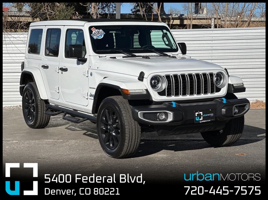 2024 Jeep Wrangler 4xe Sahara 4WD. 1 Owner. No Accident CarFax History. Custom Katzkin Grey and Blue Leather Seats. Sky One Touch Power Top. Cooled & Heated Seats. Heated Steering Wheel. Apple CarPlay & Android Auto. Safety Group: Adaptive Cruise Control. Lane Assist. Blind Spot Monitoring. Parking Sensors. Back-Up Camera. Bluetooth. Push-Button Start. Remote Start. Running Boards. Steering Wheel Controls. Touchscreen. USB/AUX Input.
