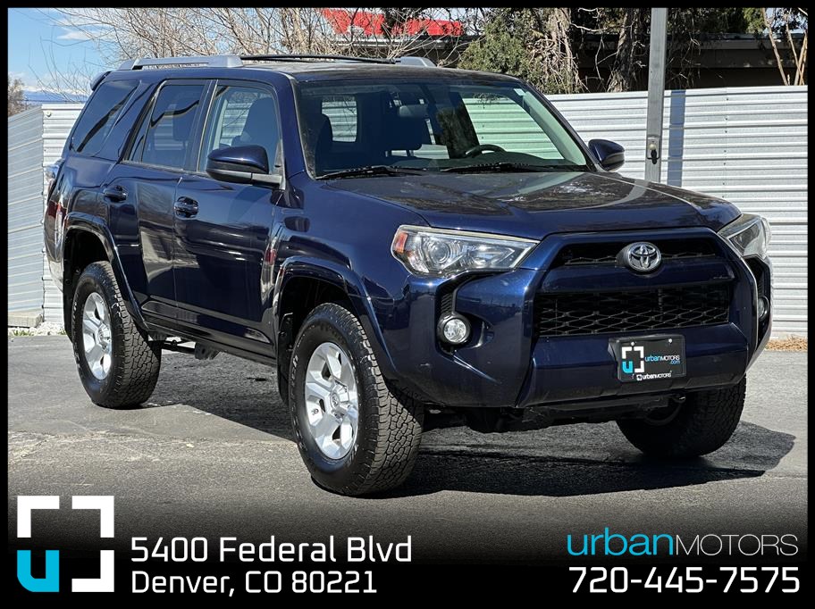 Discover the perfect blend of rugged capability and modern comfort with this 2017 Toyota 4Runner SR5 Sport Utility in striking blue. Powered by a robust 4.0L V6 engine and equipped with a smooth 5-speed automatic sequential shift transmission, this 4WD beast is ready to conquer Denver's diverse terrain with confidence. With 161,802 miles, it has proven reliability backed by Toyota’s legendary durability. Step inside to enjoy a wealth of premium features: Entune infotainment with AM/FM/HD radio, Bluetooth connectivity, navigation system, and SiriusXM satellite for endless entertainment. Safety shines with a backup camera, multiple airbags including side and knee airbags, ABS with 4-wheel control, stability and traction control, hill start and downhill assist—all ensuring peace of mind on every journey. Convenience meets style with alloy wheels, fog lights, roof rack, power liftgate, keyless entry, cruise control, and a towing package for your adventurous lifestyle. Whether exploring the city streets or fueling your weekend escapes, this 4Runner blends practicality with refined performance. Don’t miss your chance to own a dependable, feature-rich SUV that handles whatever the road throws your way. Visit Urban Motors Blue in Denver today and elevate your driving experience with this exceptional Toyota 4Runner SR5!
