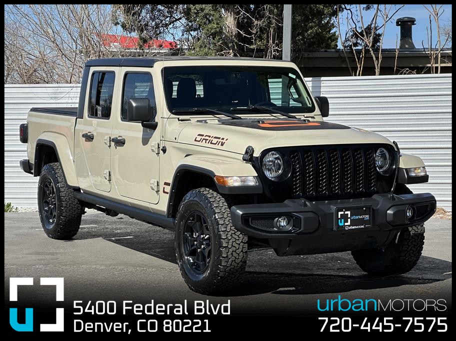 Discover the rugged capability and refined comfort of this 2022 Jeep Gladiator Willys Pickup, proudly offered by Urban Motors Blue in Denver, CO. With just 41,327 miles, this tan 4-door truck pairs a powerful 3.6L V6 VVT engine with an 8-speed automatic transmission and reliable 4WD, ready for any adventure or daily drive. Equipped with an 8.4" touchscreen featuring premium Alpine audio, navigation, and Bluetooth connectivity, every journey is enjoyable and connected. Stay comfortable year-round with heated seats and the Cold Weather Group, while convenience shines through keyless entry, push-button start, and dual-zone climate control. Safety and confidence come standard with 4-wheel ABS, electronic stability control, multiple airbags, backup camera, fog lights, and advanced traction and rollover mitigation systems. The rugged exterior is enhanced by premium alloy wheels, a bed liner, hard tonneau cover, and fixed running boards, plus a robust towing package perfect for weekend escapes. This Gladiator Willys blends Jeep’s legendary off-road DNA with modern technology and comfort—ideal for those who demand versatility and style. Don’t miss out on owning a standout pickup that delivers performance and premium features in one exceptional package. Visit Urban Motors Blue today and take this Jeep Gladiator Willys home!
