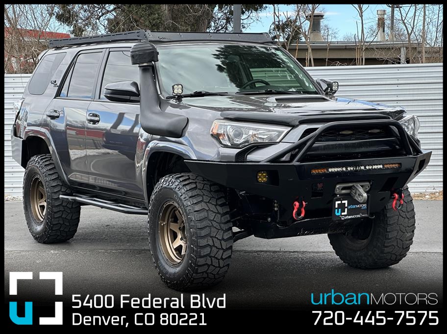 Discover adventure and reliability with this 2018 Toyota 4Runner TRD Off-Road in sleek gray, now available at Urban Motors Blue in Denver! Powered by a robust 4.0L V6 engine paired with a smooth 5-speed automatic transmission, this 4WD SUV is built to conquer any terrain with confidence. With 123,049 miles, it's a well-maintained, ready-for-action vehicle boasting premium off-road capabilities like kinetic dynamic suspension, downhill assist, hill start assist, and oversize off-road tires. Inside, enjoy comfort and convenience with power-adjustable seats, dual-zone climate control, and an intuitive Entune infotainment system featuring Bluetooth, SiriusXM satellite radio, and navigation. Safety is paramount with multiple airbags, stability and traction control, backup camera, and advanced braking systems. Additional features like keyless entry, roof rack, running boards, and towing package elevate both utility and style. Perfect for outdoor enthusiasts and families alike, this 4Runner blends rugged performance with everyday practicality. Don’t miss out on owning a versatile, dependable SUV that stands ready for your next journey. Visit Urban Motors Blue today to take this capable Toyota 4Runner TRD Off-Road for a test drive!