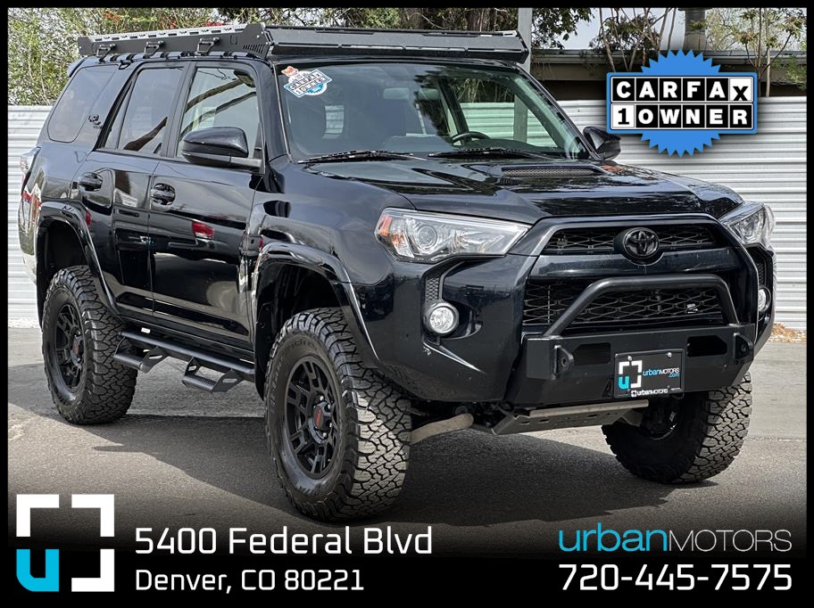 Discover adventure and reliability with this 2018 Toyota 4Runner TRD Off-Road, now available at Urban Motors Blue in Denver, CO! With 107,705 miles, this black beauty combines rugged capability with premium comfort. Powered by a robust 4.0L V6 engine and equipped with a 5-speed automatic transmission and 4WD, it’s ready to conquer any terrain. Enjoy advanced features like the navigation system, backup camera, Entune infotainment with Bluetooth, and premium sound for an enhanced driving experience. Safety is paramount with multiple airbags, stability and traction control, hill start and downhill assist controls, and keyless entry. This 4Runner stands out with its stylish roof rack, running boards, fog lights, and durable premium wheels, plus a towing package perfect for your weekend getaways. Whether you’re tackling off-road trails or cruising city streets, this TRD Off-Road offers unmatched versatility and comfort. Don’t miss your chance to own this expertly maintained SUV that balances power, convenience, and style. Visit Urban Motors Blue today and take the 2018 Toyota 4Runner TRD Off-Road for a test drive!