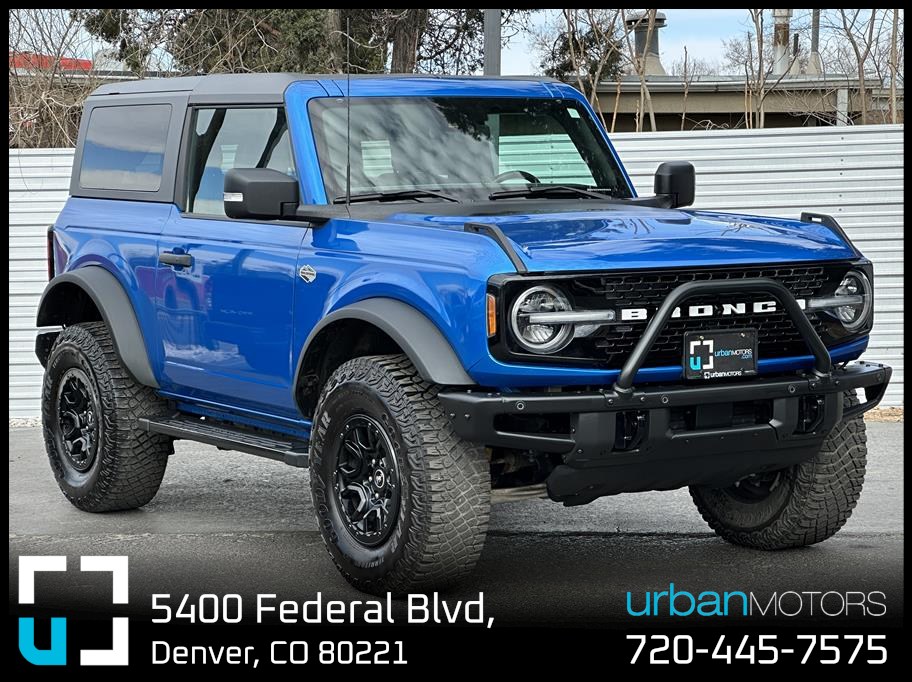Experience adventure and luxury combined in this stunning 2022 Ford Bronco Wildtrak Sport Utility, dressed in vibrant blue and ready to conquer any terrain with its powerful 2.7L V6 EcoBoost twin-turbo engine and 4WD capability. With only 16,609 miles, this well-maintained used Bronco boasts a smooth 10-speed automatic transmission and the exclusive Sasquatch Package for superior off-road performance. Step inside to discover premium leather heated seats, a modern SYNC infotainment system paired with a Bang & Olufsen sound system, and advanced technology like a 360-degree camera, navigation, and Ford Co-Pilot360 safety suite including blind-spot monitoring, adaptive cruise control, and lane keeping assist. Enjoy convenience with keyless entry, push-button start, and fixed running boards for easy access. Built for both rugged trails and daily driving, this Bronco features LED headlamps, fog lights, hill start assist, and premium wheels that elevate its style and capability. Don’t miss the chance to own this luxurious yet tough SUV—perfect for thrill-seekers who demand comfort, safety, and performance. Visit Urban Motors Blue in Denver, CO today and make it yours!