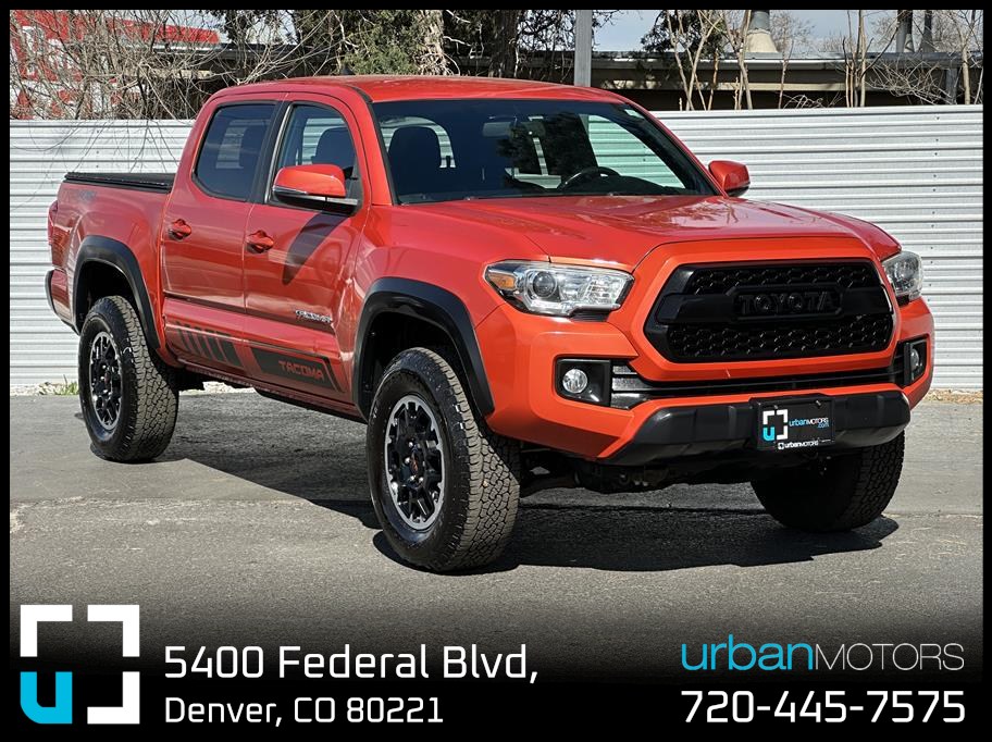 Discover the perfect blend of rugged capability and modern comfort with this 2017 Toyota Tacoma Double Cab TRD Off-Road in striking Orange. With just 99,530 miles, this 4WD powerhouse features a robust 3.5L V6 engine paired with a smooth 6-speed automatic transmission, ready to tackle Denver's toughest trails or city streets with ease. Equipped with premium off-road tires, a towing package, and hill start assist, it’s built for adventure. Inside, enjoy advanced tech like a backup camera, Entune Premium Audio, Bluetooth, navigation system, and SiriusXM satellite radio for an elevated driving experience. Safety is paramount with multiple airbags, stability and traction control, and a security system. The bed liner and sliding rear window add practical versatility while premium wheels, fog lights, and a rear spoiler enhance its bold, athletic presence. This Tacoma is your ultimate companion for work, play, and everything in between—reliable, stylish, and ready for your next journey. Don’t miss out on owning a true off-road legend! Visit Urban Motors Blue in Denver and take it for a spin today.