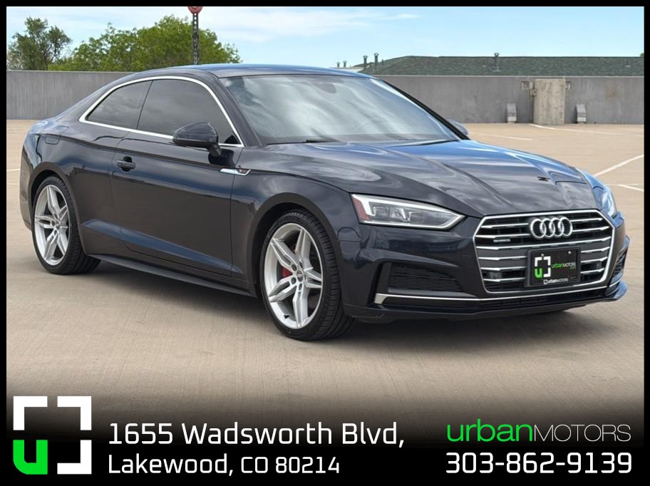 --NO DEALER FEES-- READ OUR REVIEWS ON FACEBOOK/GOOGLE. We are proud to support our troops by providing a Military DISCOUNT to all Members of the United States Armed Forces. Visit us at www.urbanmotors.com, TEXT or CALL 303-862-9139, or come see us at 1655 Wadsworth Blvd, Lakewood, CO 80214. Discover the perfect blend of luxury, performance, and advanced technology with this stunning 2018 Audi A5 Premium Plus Coupe. Finished in sleek Black and boasting just 76,972 miles, this AWD masterpiece features a spirited 2.0L turbocharged 4-cylinder engine paired with a smooth 7-speed S tronic automatic transmission, delivering an exhilarating yet efficient driving experience. Step inside to find a meticulously maintained cabin adorned with premium leather, dual power heated seats, and a panoramic roof that fills the interior with natural light. Stay connected and entertained with Audi connect, Bluetooth wireless, SiriusXM satellite radio, and a crisp navigation system. Safety is paramount with features like blind-spot alert, backup camera, parking sensors, electronic stability control, multiple airbags, and an advanced alarm system. Experience the ultimate luxury coupe designed to turn heads and elevate your driving pleasure. Visit Urban Motors Green in Lakewood, CO, to test drive this exceptional 2018 Audi A5 Premium Plus Coupe today!