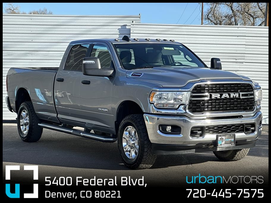 2023 Ram 2500 Crew Cab Big Horn 4WD. 8-Ft Long Bed. 1 Owner. No Accident CarFax History. Apple CarPlay & Android Auto. Bench Seat. Anti–Spin Differential Rear Axle. Bed Liner. Remote Start. Back-Up Camera. Bluetooth. Push-Button Start. Steering Wheel Controls. Touchscreen. USB/AUX Input. This vehicle has Hail Damage.