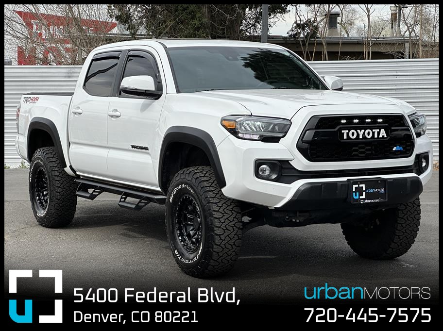 Discover the perfect blend of rugged capability and refined comfort with this 2023 Toyota Tacoma Double Cab TRD Off-Road in striking white. With only 28,812 miles, this 4WD powerhouse is equipped with a robust 3.5L V6 engine and smooth 6-speed automatic transmission, ready to tackle any terrain. Loaded with premium features like heated leather seats, JBL premium sound, moonroof, and advanced safety tech including blind-spot monitoring, lane departure warning, and dynamic radar cruise control, it ensures every drive is both thrilling and secure. The Premium Off-Road and Technology Packages offer multi-terrain cameras, oversized off-road tires, navigation system, and keyless push-button start for ultimate convenience and confidence on the road or trail. This Tacoma also boasts a hard tonneau cover, bed liner, running boards, and towing/camper package—ideal for all your outdoor adventures. Meticulously maintained and designed for both work and play, this pickup is your go-anywhere, do-anything companion. Visit Urban Motors Blue in Denver today and elevate your driving experience with this exceptional Tacoma!