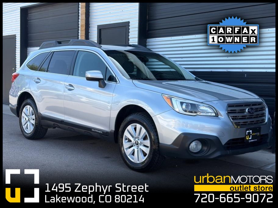 Discover the perfect blend of reliability, comfort, and advanced safety with this 2016 Subaru Outback 2.5i Premium Wagon, now available at Urban Motors Yellow in Denver! With 115,529 miles, this silver AWD beauty features a fuel-efficient 2.5L 4-cylinder PZEV engine paired with a smooth CVT automatic transmission, delivering confident performance on any terrain. Loaded with premium options like EyeSight Driver Assist, Blind-Spot Detection, Lane Keep Assist, and a Backup Camera, your safety is top priority. Enjoy heated seats, all-weather package, and a power liftgate for ultimate convenience, while the roof rack and alloy wheels boost both utility and style. Bluetooth, SiriusXM, and a user-friendly infotainment system keep every drive connected and entertaining. Meticulously maintained and equipped with traction control, hill descent control, and a full suite of airbags, this Outback is ready to elevate your driving experience. Don’t miss this opportunity to own a versatile, well-equipped crossover perfect for city streets and mountain adventures alike. Visit Urban Motors Yellow today and drive home confidence!