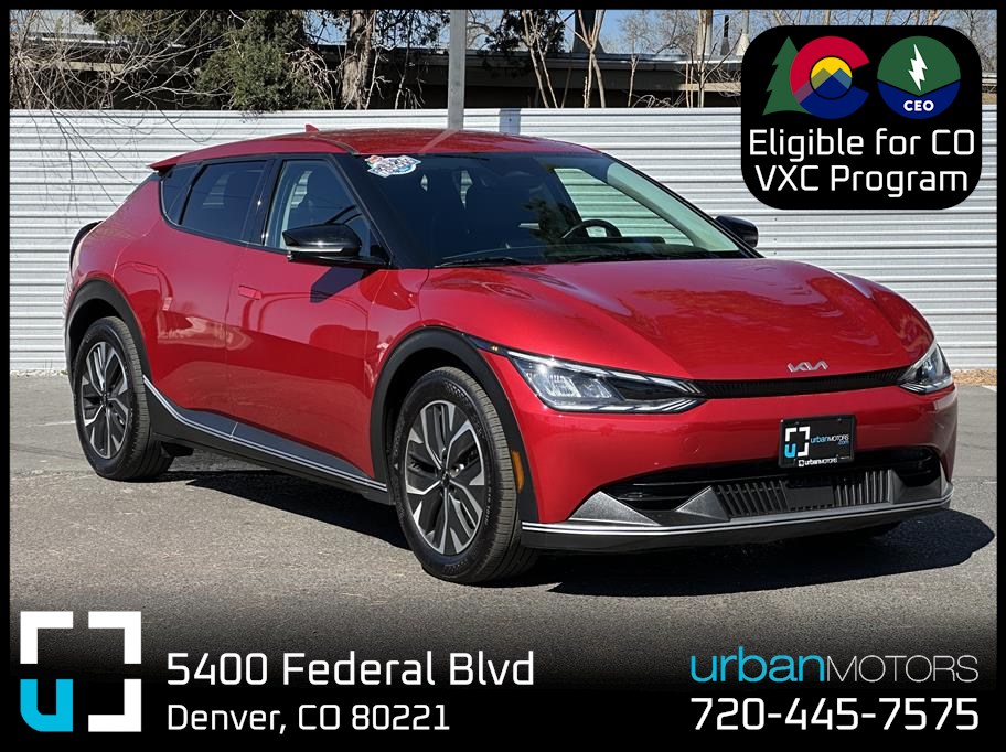 Experience the perfect blend of style, performance, and cutting-edge electric innovation with this stunning 2024 Kia EV6 Light Long Range Sport Utility, now available at Urban Motors Blue in Denver, CO. Finished in an eye-catching red, this used EV6 boasts only 18,696 miles and delivers exhilarating all-wheel-drive performance through its efficient AC electric motor paired with a seamless single-speed reduction gear transmission. Packed with advanced features for comfort and safety, enjoy heated power seats, keyless entry, push-button start, and a sleek navigation system that keeps you effortlessly on route. Drive confidently with comprehensive safety tech including blind-spot alert, lane keeping assist, smart cruise control, and a backup camera. Additional conveniences like alloy wheels, LED headlamps, Bluetooth wireless connectivity, and SiriusXM Satellite radio round out this expertly designed electric SUV. This EV6 strikes the ideal balance between sustainability and sophistication, making it the perfect choice for Denver drivers seeking a stylish, reliable, and eco-friendly ride. Don’t miss your chance to own this exceptional electric SUV—visit Urban Motors Blue today and take the next step toward an electrifying new driving experience!